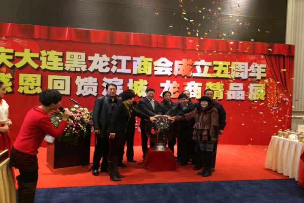 庆大连黑龙江商会成立五周年,感恩回馈滨城龙商精品展于1月21日,马年春节即将到来之际在大连中航国际广场隆重开幕!各大商会会长和晚报相关负责人共同启动了开幕仪式!