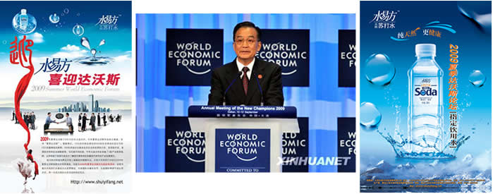 天然苏打水经过2009年夏季达沃斯组委会的层层赛选,当选为2009年夏季达沃斯论坛指定引用水。这是水易方苏打水继成为大连赏槐会,大连国际沙滩文化节,大连国际啤酒节指定饮用水后,再一次成为国际大型活动的指定饮品。