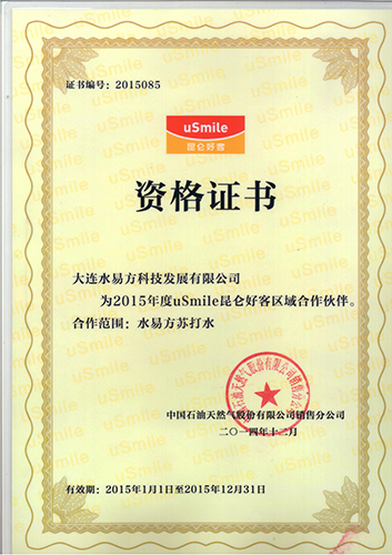 2015年新年伊始,水易方迎来喜讯:中国石油销售公司向大连水易方科技发展有限公司颁发了2015年度 uSmile昆仑好客区...